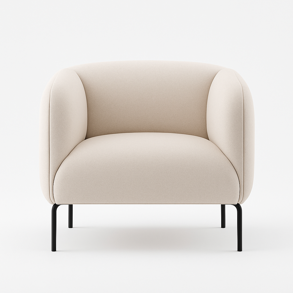 The Aerie Sofa embodies elevated minimalism with its lightweight design and sleek black legs. Its soft geometric form offers both visual appeal and comfortable seating, making it an ideal choice for modern interiors seeking understated elegance and refined simplicity.