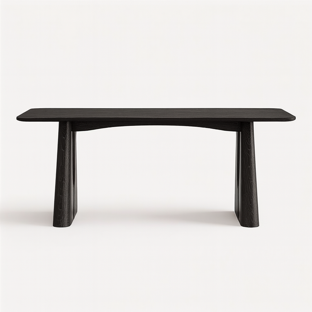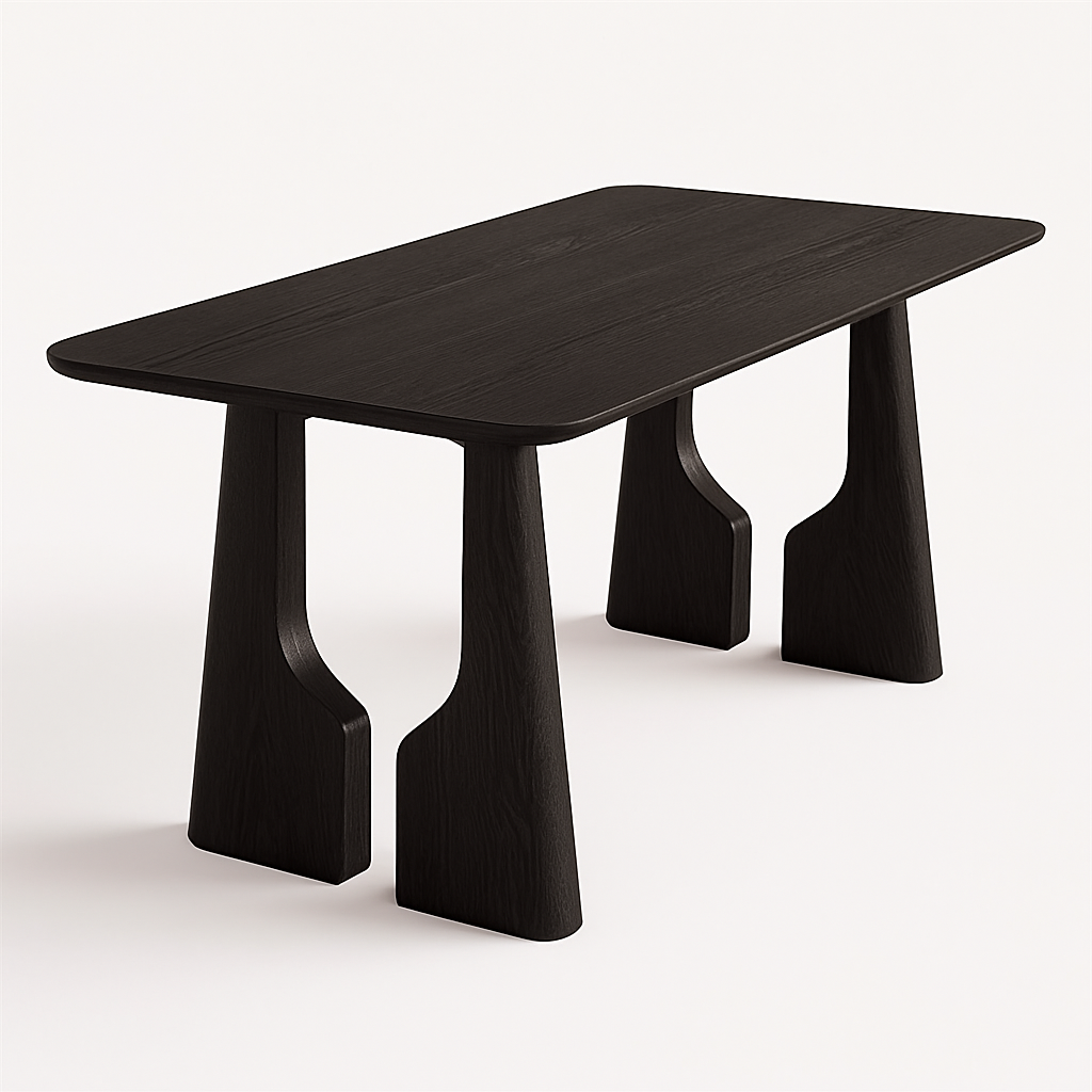 Sleek black dining table featuring distinctive sculptural legs for a modern look.
